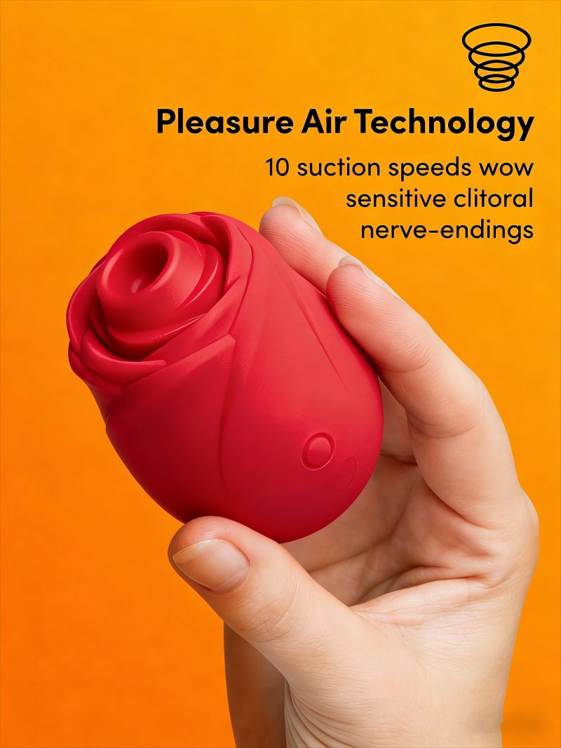 1. Rose-inspired red clitoral suction stimulator designed to deliver intense stimulation