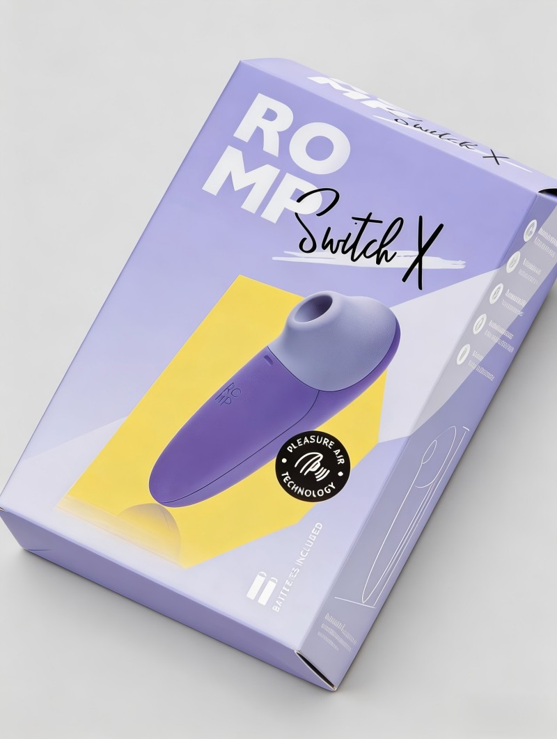 Upgrade your solo play with the sleek and compact Switch X clitoral stimulator from ROMP. Using innovative Pleasure Air Technology, this device creates gentle yet powerful waves of air pressure for a unique, suction-like sensation without direct contact.